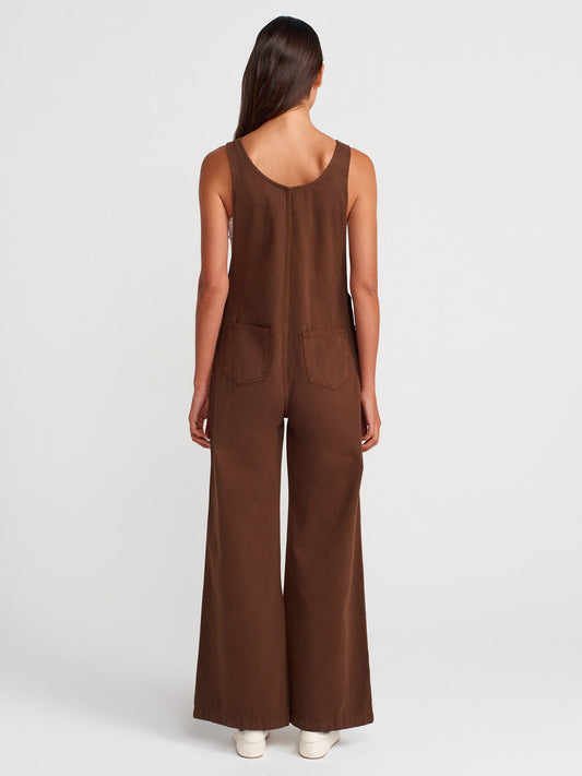 1952 Cotton Shabby Denim Shoe-Brown Jumpsuit