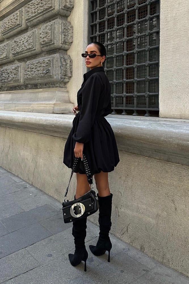 1952 Black Puff Shirt Dress